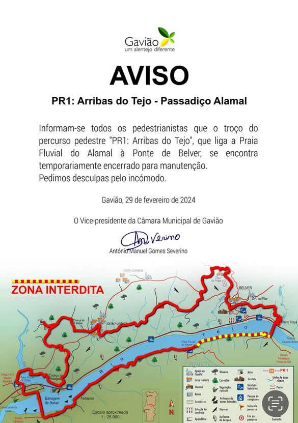 Passadiço do Alamal, integrado no PR1 Arribas do Tejo, interdito temporariamente, para manutenção