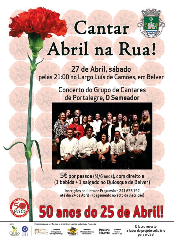 Dia 27 de abril, venha assistir ao melhor espetáculo de música de intervenção, com grupo de cantares ”O Semeador”, em Belver.