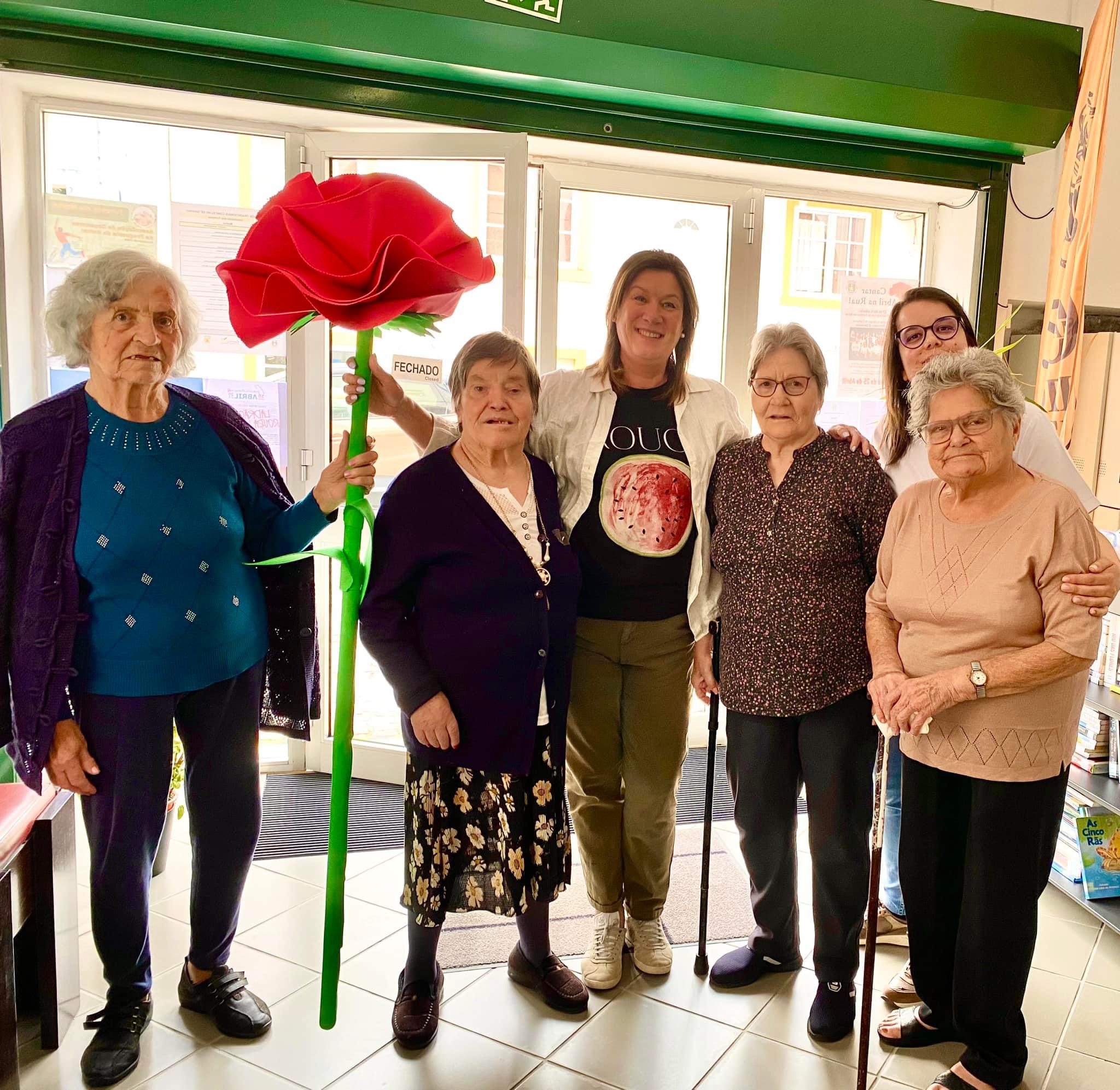 Algumas utentes do CSB, acompanhadas da animadora sociocultural, surpreenderam-me na Junta de Freguesia com a oferta de um lindíssimo cravo de abril!