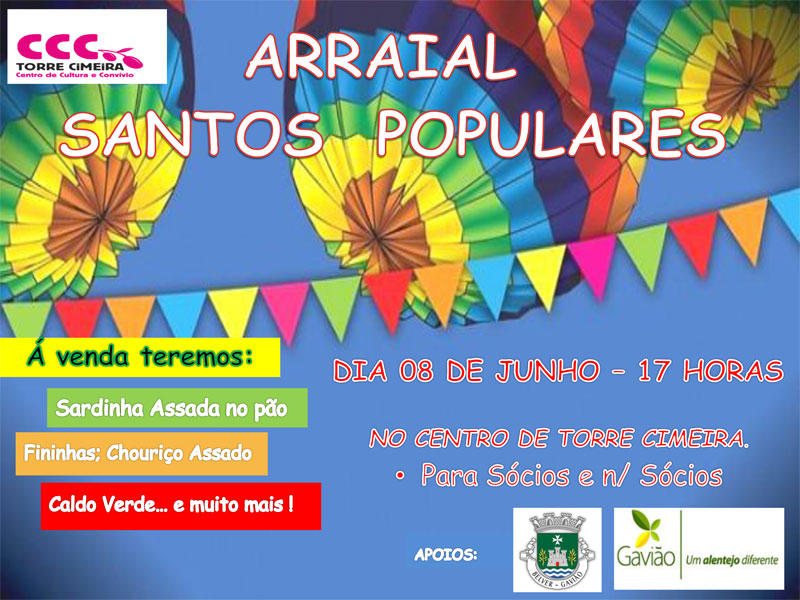 Arraial Santos Populares dia 8 de junho , em Torre Cimeira